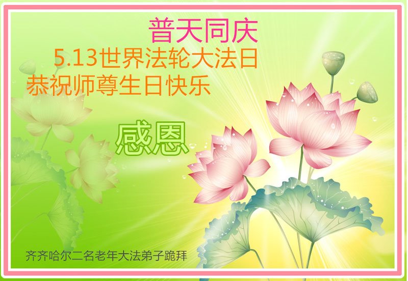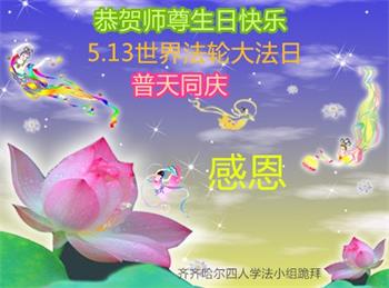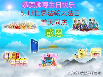 齊齊哈爾大法弟子恭賀世界法輪大法日暨師尊華誕(22條)