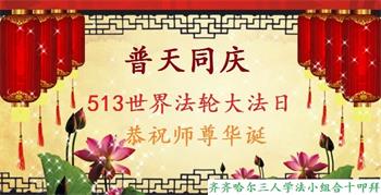 黑龍江齊齊哈爾市鐵鋒區多個學法小組全體大法弟子恭祝5.13世界法輪大法日!