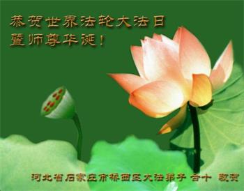 河北省石家莊市一家人及學法小組恭祝師尊華誕暨世界法輪大法日!
