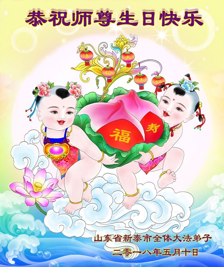 山東省泰安市新泰全體大法弟子恭祝師尊生日快樂!普天同慶法輪大法洪傳二十六週年!