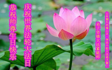 山東煙台市福山區一學法小組大法弟子恭祝師尊生日快樂!慶祝世界法輪大法日!