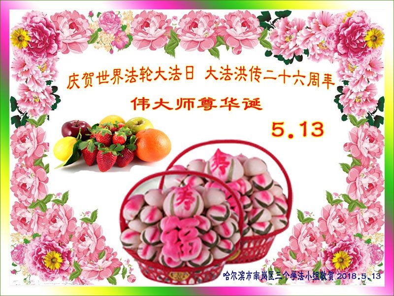 黑龍江省哈爾濱市南崗區三個學法小組大法弟子慶賀世界法輪大法日,大法洪傳二十六週年暨師尊華誕!