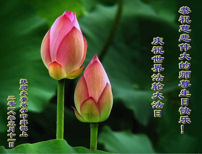 遼寧省撫順夫妻大法弟子敬祝師尊生日快樂!慶祝世界法輪大法日!