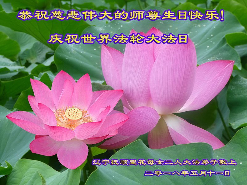 遼寧撫順望花母女二人大法弟子恭祝師尊生日快樂!慶祝世界法輪大法日!