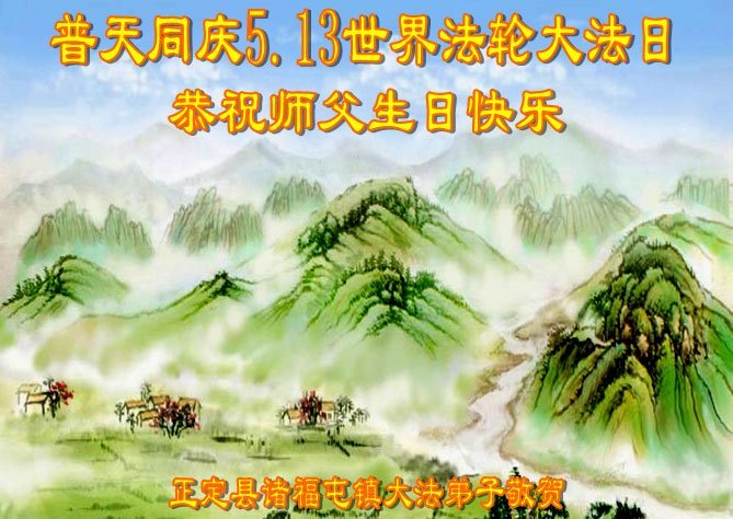 河北正定諸福屯鎮大法弟子恭賀5.13世界法輪大法日!恭祝師父生日快樂!