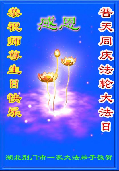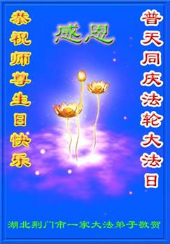 湖北省荊門市一家大法弟子恭祝師尊生日快樂!