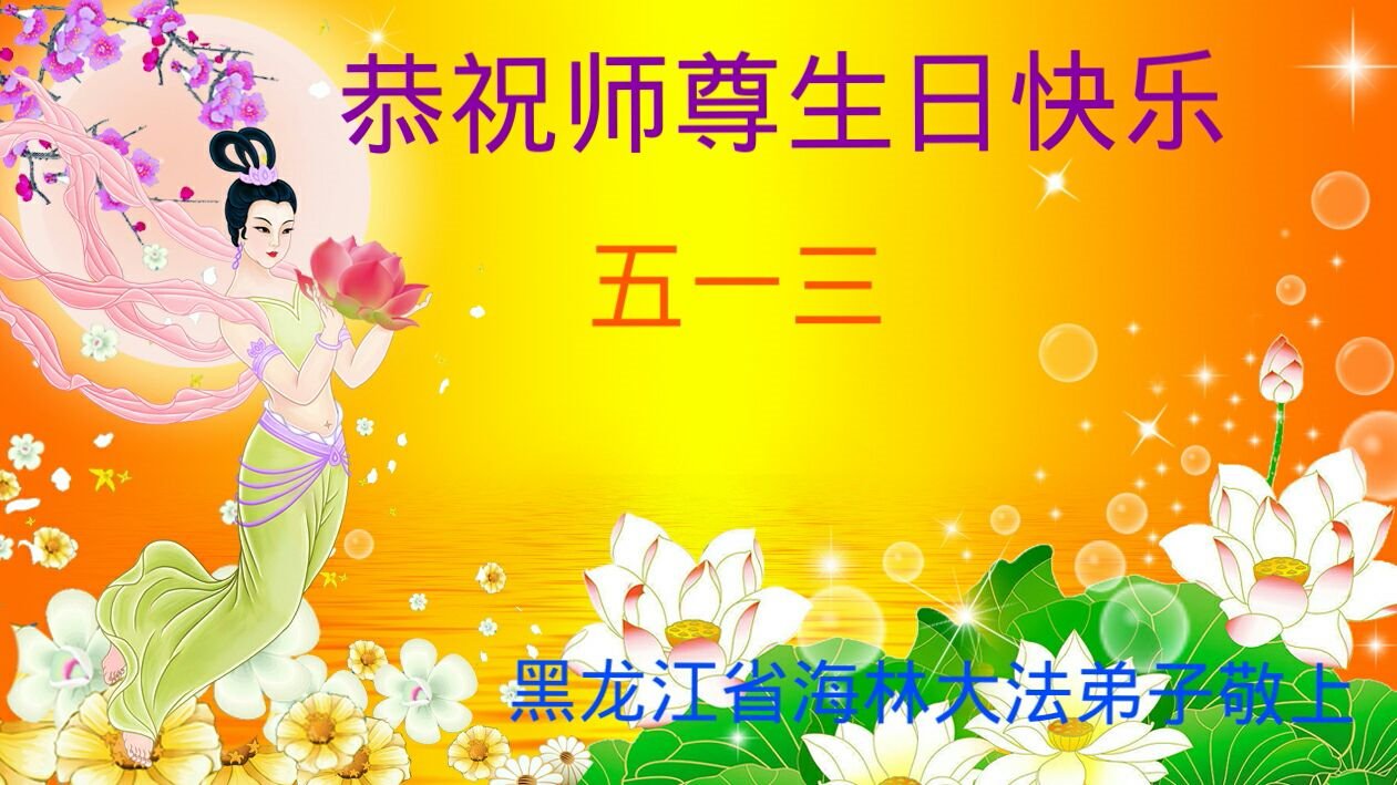 黑龍江省牡丹江市海林市大法弟子恭祝師尊生日快樂!