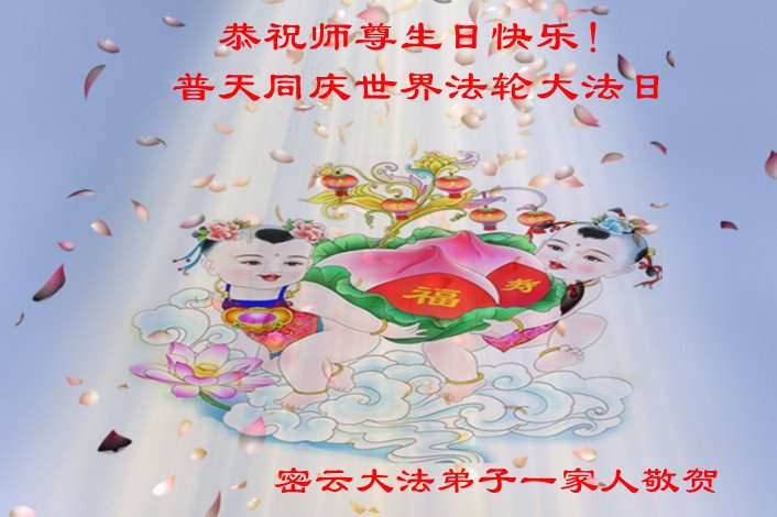 值此「5﹒13」世界法輪大法日即將來臨之際,密雲大法弟子一家人恭祝師尊生日快樂!共慶世界法輪大法日!