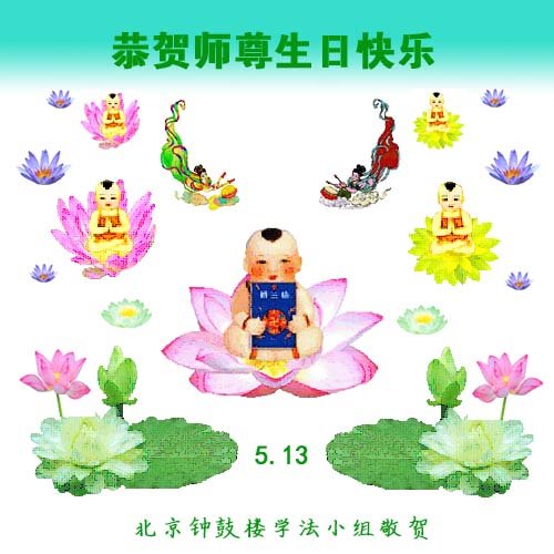 北京市鐘鼓樓學法小組大法弟子恭祝師尊生日快樂!