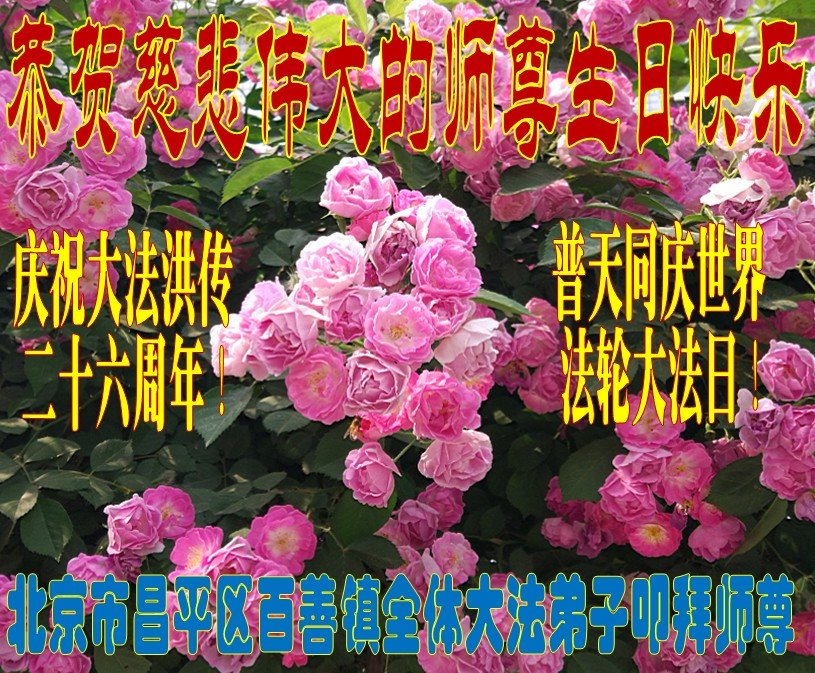 北京市昌平區百善鎮全體大法弟子恭祝慈悲偉大的師尊生日快樂!