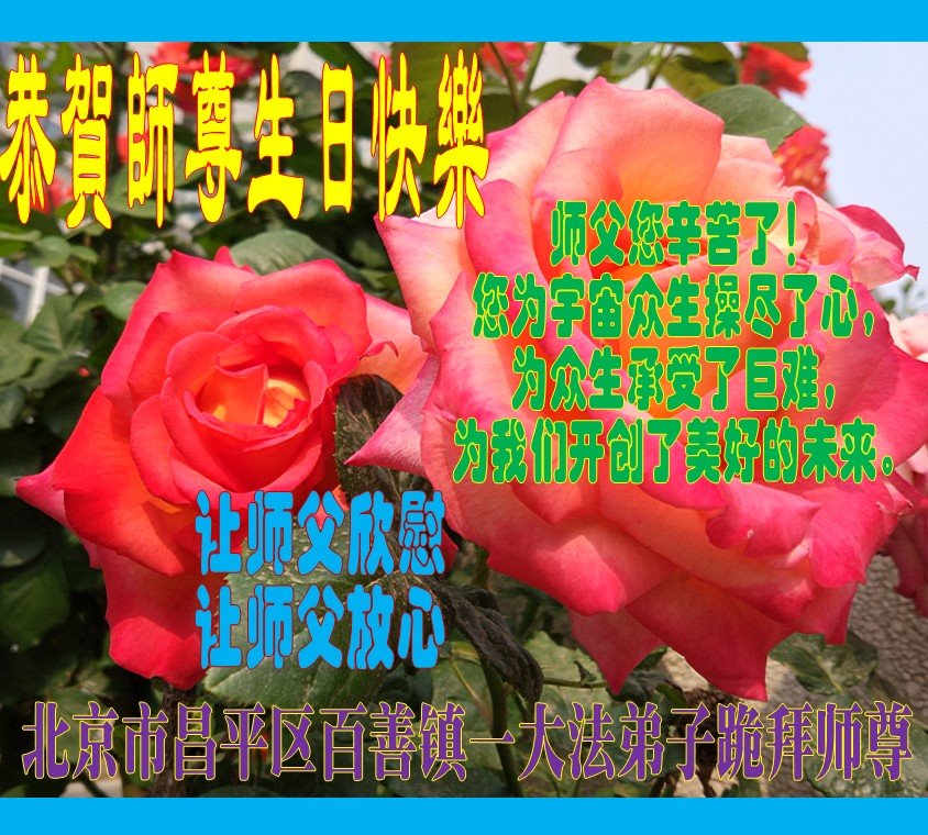 北京市昌平區百善鎮大法弟子恭祝慈悲偉大的師尊生日快樂!