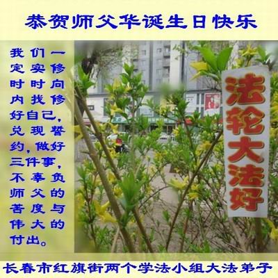 吉林省長春紅旗街兩個學法小組大法弟子恭賀師尊華誕生日快樂!