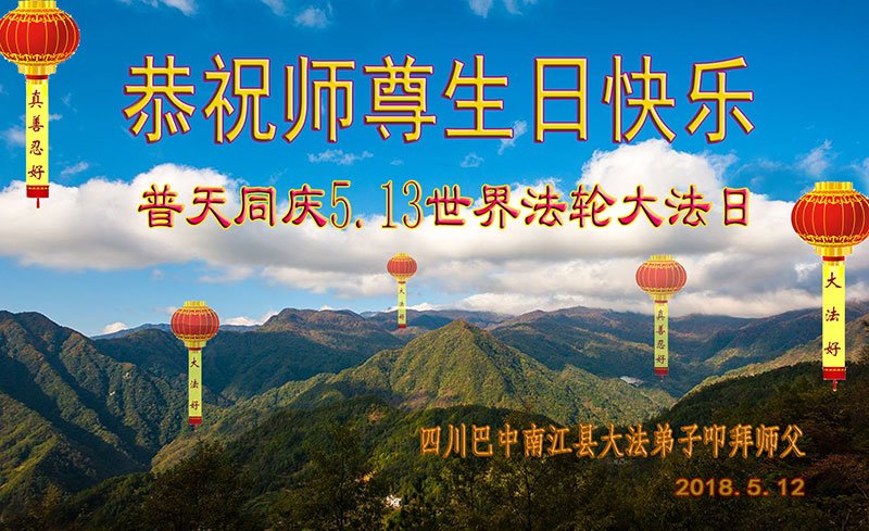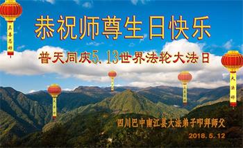 四川巴中南江縣大法弟子恭祝師父生日快樂!普天同慶世界法輪大法日!
