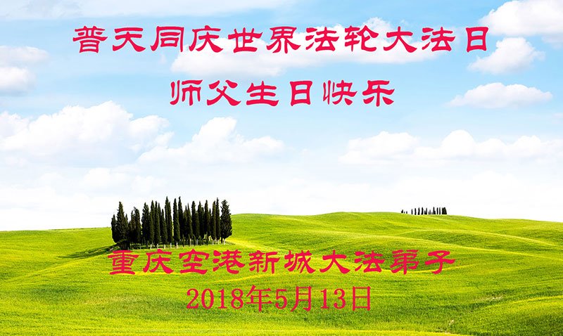 重慶空港新城大法弟子恭祝師父生日快樂!普天同慶世界法輪大法日!