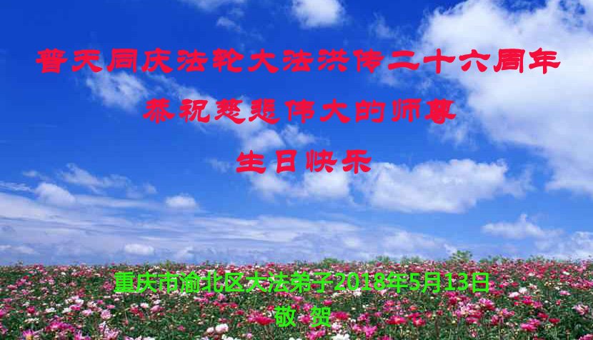重慶市渝北區大法弟子恭祝師尊生日快樂!普天同慶法輪大法洪傳二十六週年!