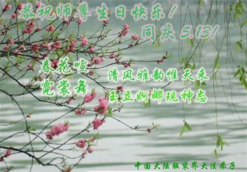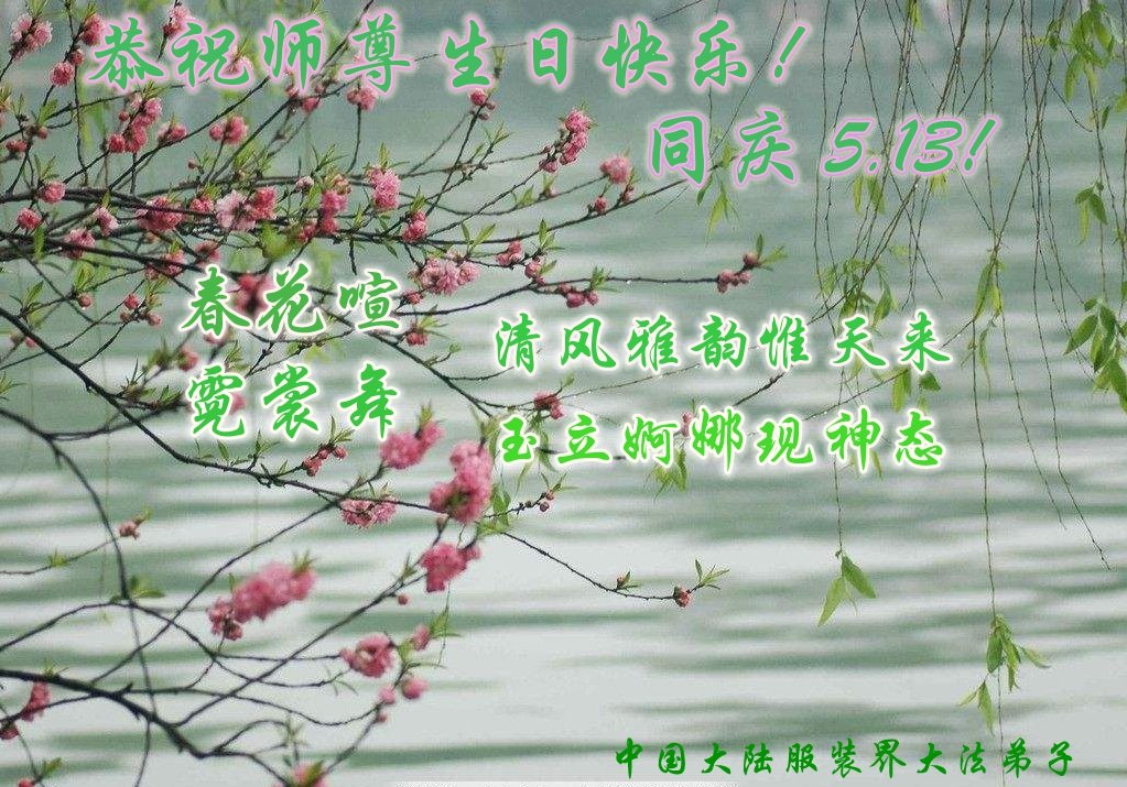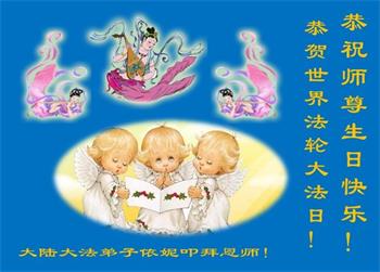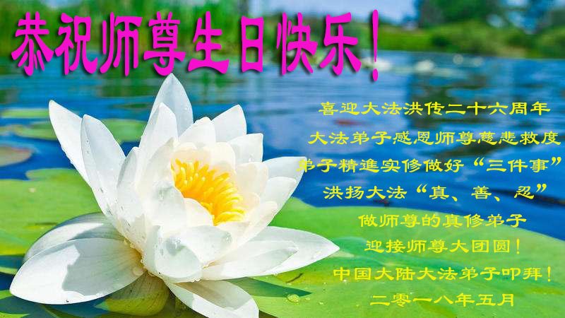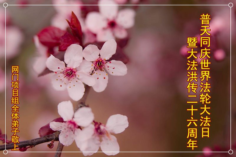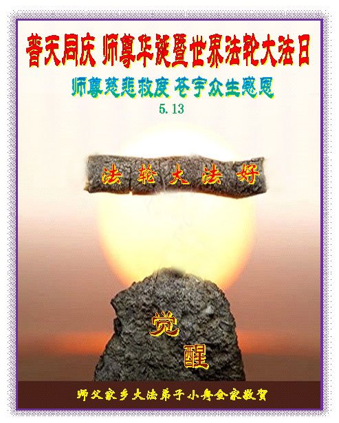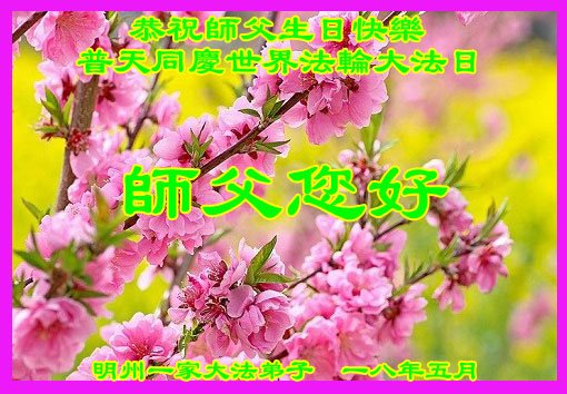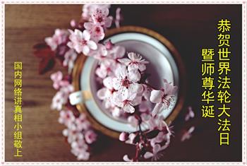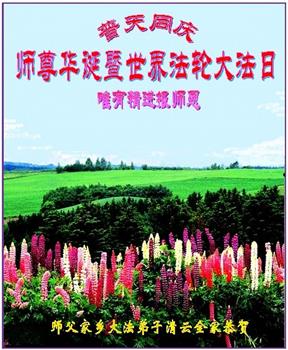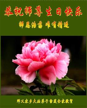 今天是師父的生日,也是大法洪傳二十六週年紀念日,同時也是第十九屆世界法輪大法日。在這喜慶的日子裏,我們首先發自內心感謝師尊的慈悲救度!在師尊的慈悲呵護下,我們才走到了今天。在正法的最後關頭,弟子們一定從一思一念上修好自己,多救人,完成自己的使命,跟師父回家。定襄全體大法弟子叩拜師尊!