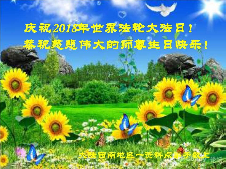 在這普天同慶的日子,弟子向慈悲偉大的師尊說聲謝謝!恭祝師尊生日快樂!在師尊的看護下,資料點走過了十多年的蹉跎歲月,風風雨雨中,擊破了無數次邪惡的攻擊與破壞,伴隨著無數的神跡見證了大法的超常與偉大,穩健的履行著救度眾生的巨大使命。能做到這一點,是因為我們有堅強的後盾,那就是偉大的師尊!