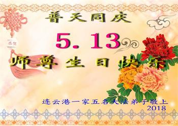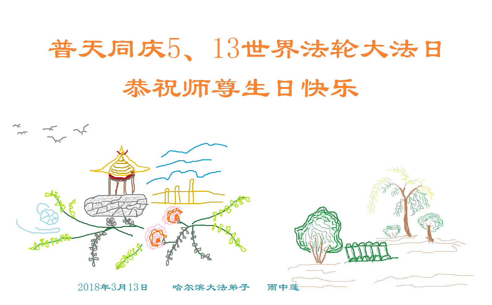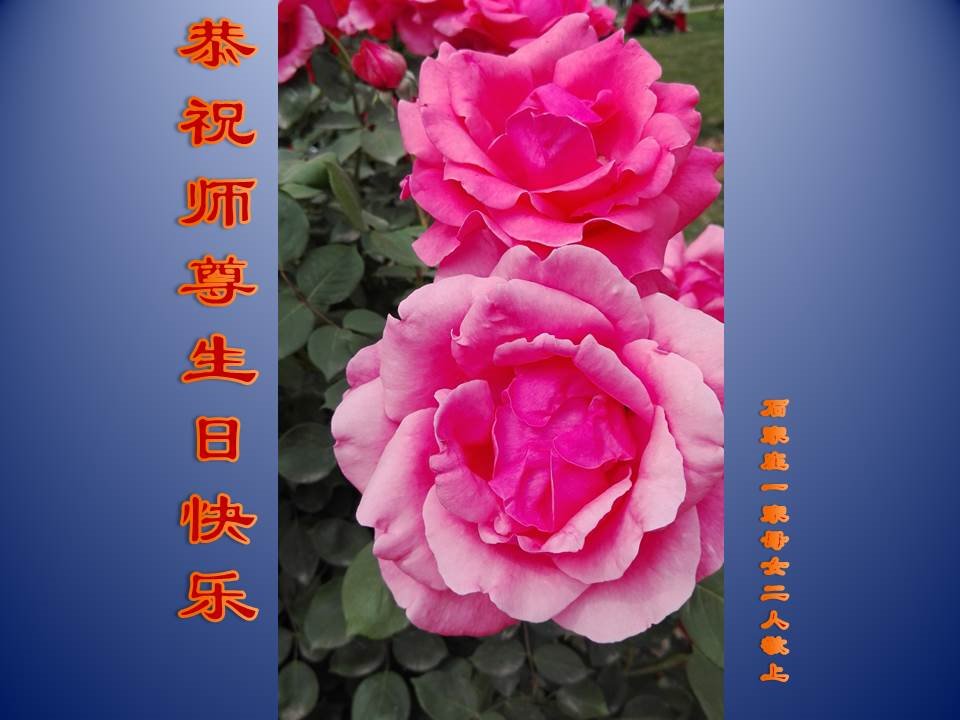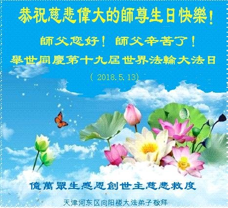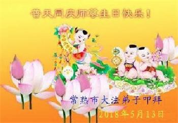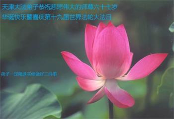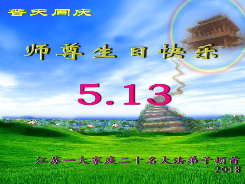 師父您好!在五一三法輪大法日到來之際,我們學法小組全體學員恭祝您生日快樂!我們一定按照您的教導,做好三件事,認真履行大法弟子的職責,修好自己,多救人,助師正法,圓滿隨師還。