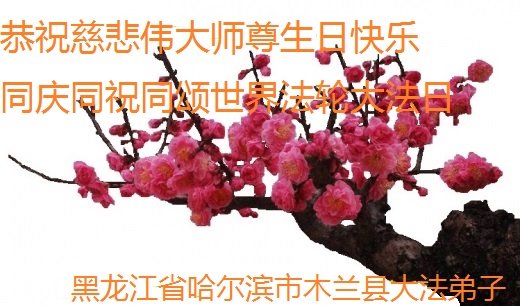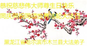 我以前有過頭疼病,還有心臟病、風濕病、腰椎間盤病,真是全身都是病,沒有好地方了。家裏活還很重,有兩個孩子,還得出去打工。丈夫不務正業,整天在外邊又跳舞又打麻將,天天不在家,也不幹活,大的上小學,小的上幼兒園,處處都用錢,一邊打工,一邊還得照看孩子,還得幹活,真是苦不堪言。就在九九年七﹒二零之前半個月,我七姐來我家說:老妹呀,你看看你現在這個樣子,好像都活不起了,走路都沒有力氣了,我真是心疼你呀,我姐看我這個樣子都掉眼淚了。姐說:我現在修大法了,你聽說過嗎?我說沒聽說過,我姐說她以前也是一身病,現在修大法了,病也好了。我給你也請一本師父的《轉法輪》,你也煉煉,還有五套功法一步到位,煉好沒有病多好呀!從那以後我就走上了修煉的路。看書、煉功,煉的挺好,七二零開始了,鋪天蓋地的打壓,電視全天都在造謠、污衊。從那以後社會不讓煉,家庭也不讓煉,所以我就停止了修煉,走了五年的彎路。二零零四年我又回到大法中來,從此我正式走上了修煉的路。我的病真是不知不覺中不翼而飛。真是感謝師父的慈悲苦度。最後獻上一首小詩祝師父生日快樂!