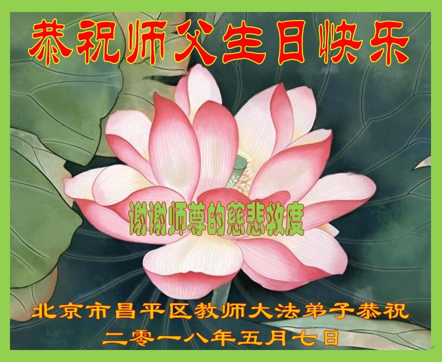 在二零一八年五一三世界法輪大法日到來之際,我們北京市昌平區教師大法弟子,共同恭祝師尊生日快樂!作為教師大法弟子,我們會智慧的把真善美的種子播撒在學生們的心中。謝謝師尊的慈悲救度!