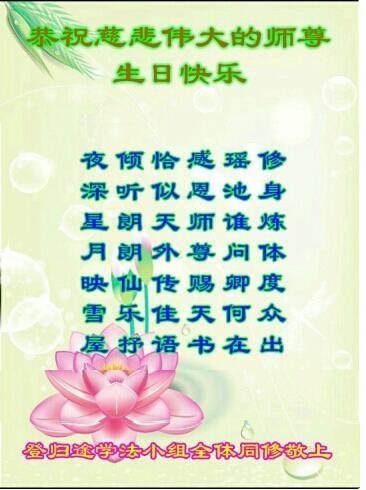 弟子代表全家人及明真相「三退」得福報的親人和世人恭祝慈悲偉大的師尊生日快樂!普天同慶世界法輪大法日!法輪大法好!真善忍好!