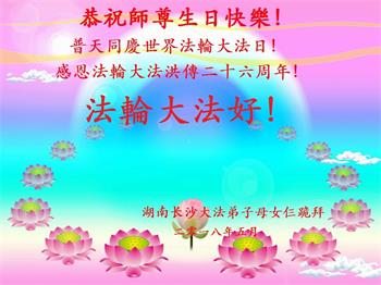 師尊您好!師尊您辛苦了!祝師尊生日快樂,歡慶法輪大法洪傳世界二十六週年!