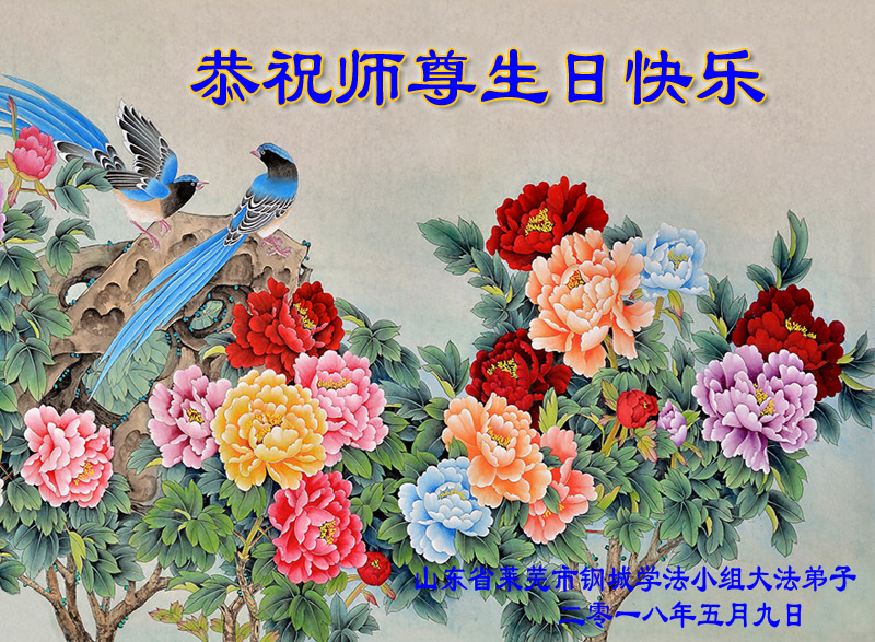 山東省泰安市新泰山村學法小組大法弟子恭祝師尊生日快樂!慶賀世界法輪大法日!
