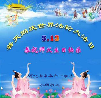 河北省辛集市一大法弟子學法小組恭賀法輪大法日!恭祝師父生日快樂!