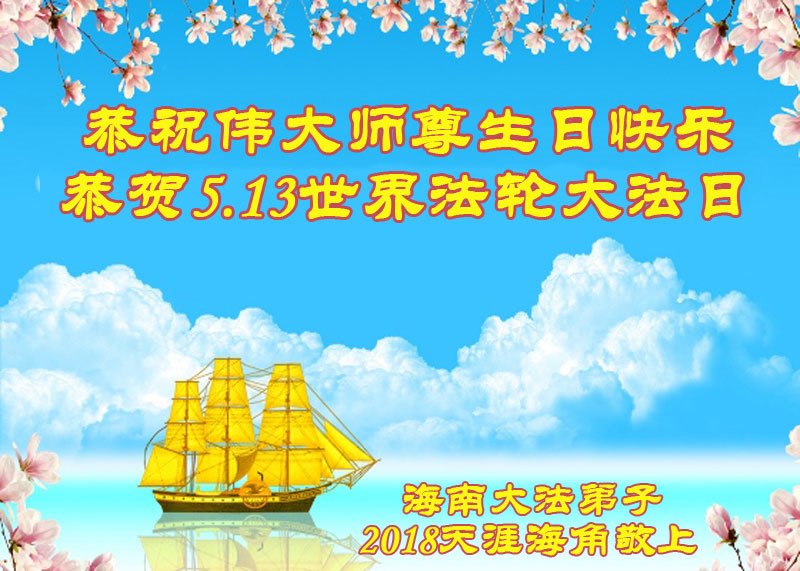 海南一大法弟子恭祝慈悲偉大的師尊生日快樂!恭祝5.13世界法輪大法日!