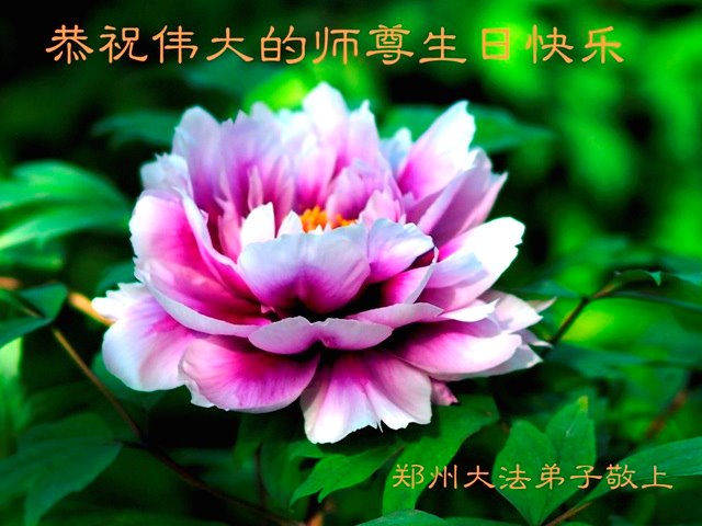 河南省鄭州市大法弟子恭祝慈悲偉大的師尊生日快樂!慶祝世界法輪大法日!