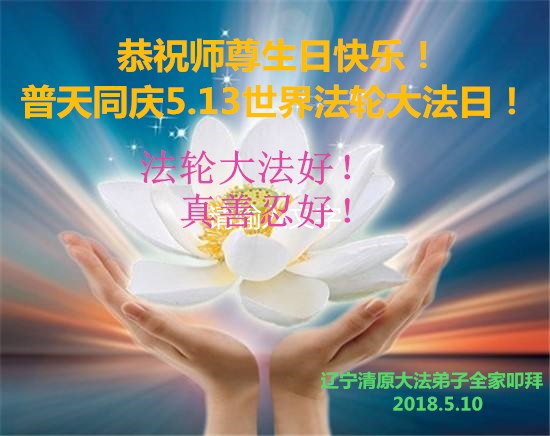 黑龍江省寶清縣大法弟子一家恭賀五﹒一三法輪大法日,恭賀法輪大法洪傳世界二十六週年!