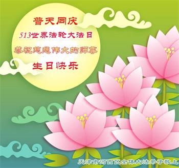 天津大法弟子恭賀世界法輪大法日暨師尊華誕(18條)