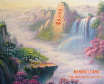 安徽省馬鞍山市大法弟子恭祝法輪大法洪傳二十六週年!歡慶世界法輪大法日!感恩師尊慈悲救度!恭祝師尊生日快樂!
