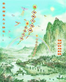 值此普天同慶、同賀之日來臨之際,弟子攜家人共6人恭祝師尊生日快樂!恭賀世界法輪大法日!