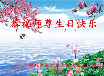 遼寧省撫順市東洲區全家大法弟子恭祝師尊生日快樂!