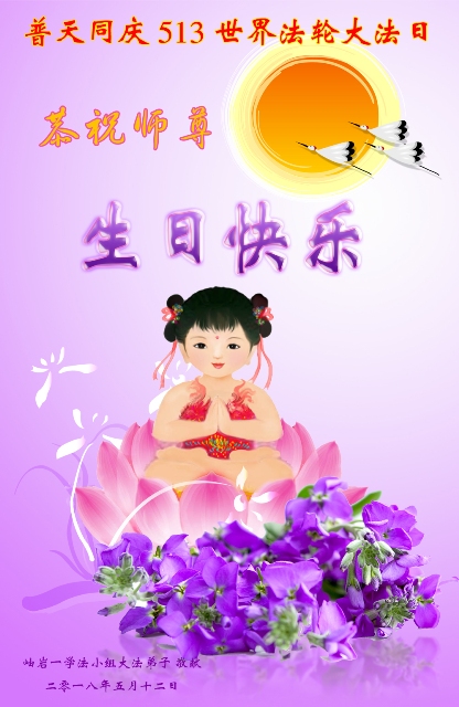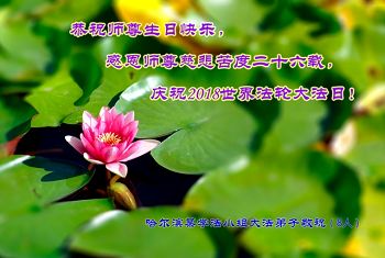 黑龍江哈爾濱市某學法小組大法弟子恭祝師尊生日快樂,感恩師尊慈悲苦度二十六載,祝賀2018世界法輪大法日!