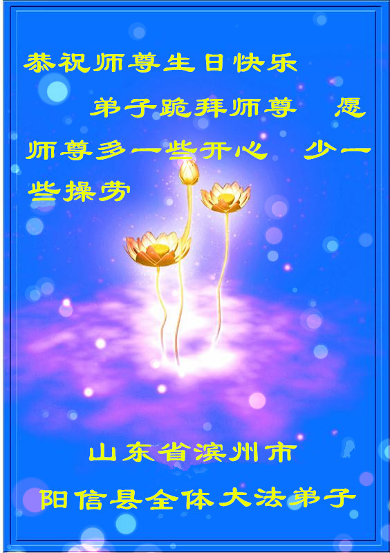 山東省濱州市陽信縣全體大法弟子恭祝師尊生日!