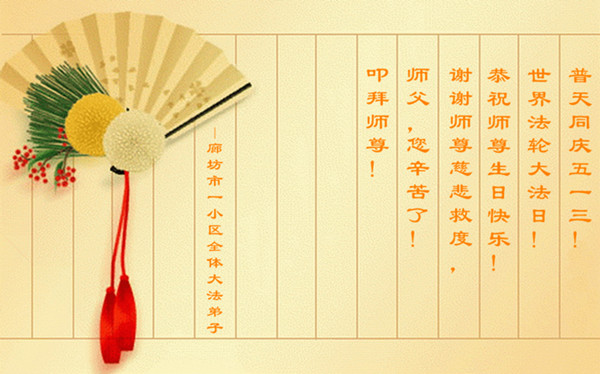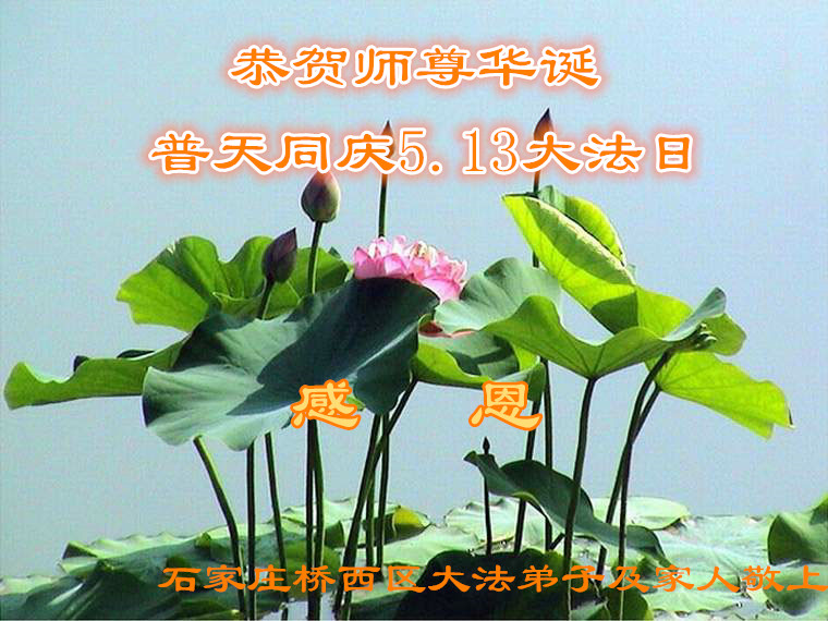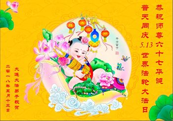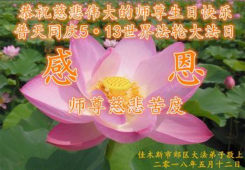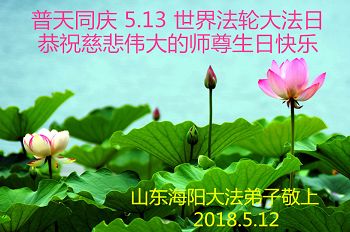 恭祝師尊生日快樂、普天同慶五一三世界法輪大法日,我們全體大法弟子表決心緊跟師父的正法進程,做好三件事,完成大法弟子的歷史使命。