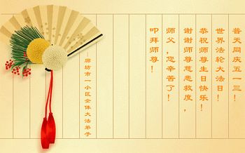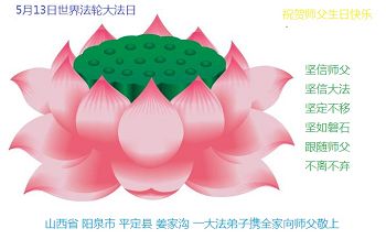 山西省陽泉市平定縣一大法弟子恭祝師尊生日快樂!同祝世界法輪大法日!