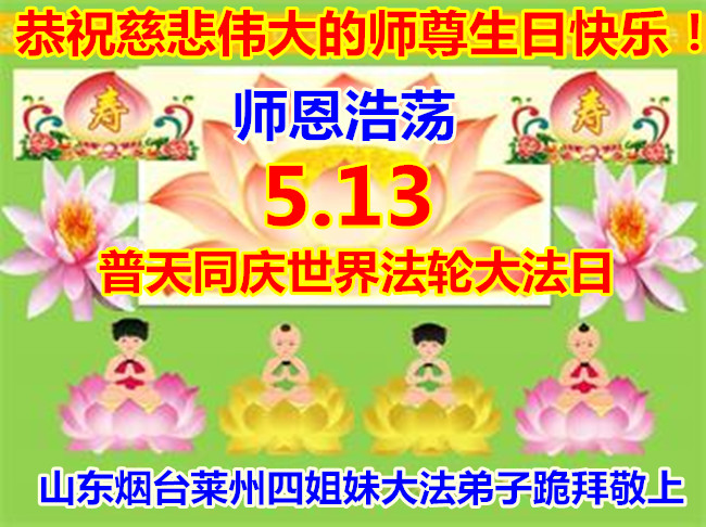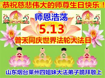 山東煙台萊州四姐妹大法弟子恭賀世界法輪大法日暨師尊華誕!