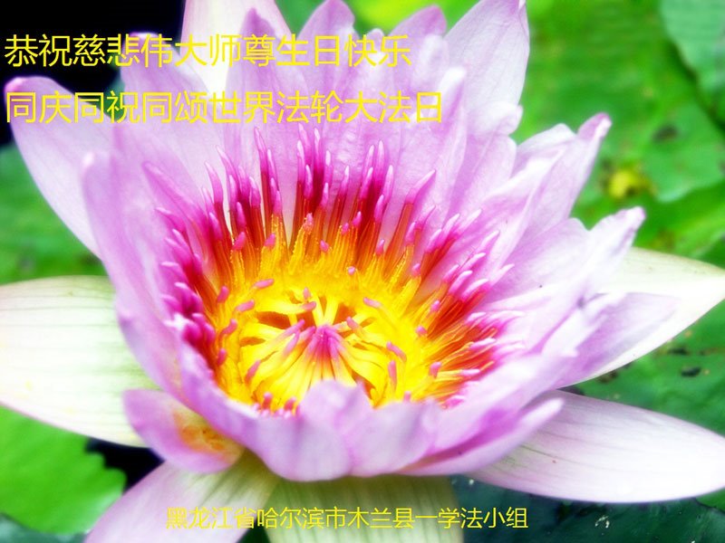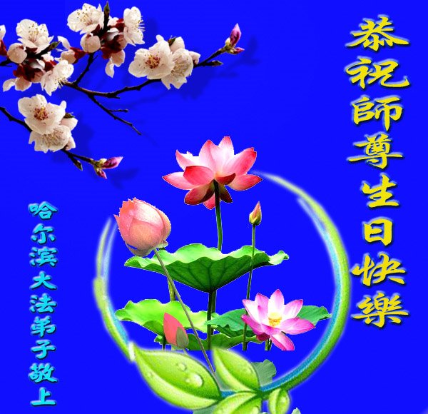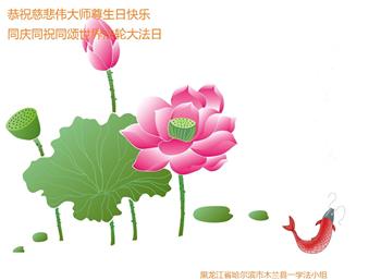 黑龍江哈爾濱市大法弟子恭祝師尊生日快樂!恭賀法輪大法日!