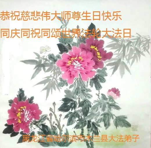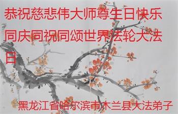 黑龍江省哈爾濱市木蘭縣大法弟子恭祝慈悲偉大的師尊生日快樂!同慶同祝同頌世界法輪大法日!