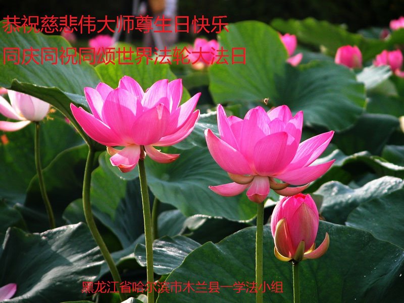 黑龍江省哈爾濱市木蘭縣一學法小組大法弟子恭祝慈悲偉大的師尊生日快樂!同慶同祝同頌世界法輪大法日!