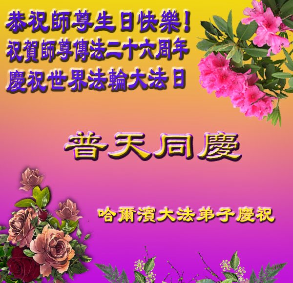 黑龍江省哈爾濱大法弟子恭祝師尊生日快樂!祝賀師尊傳法二十六週年!慶祝世界法輪大法日!