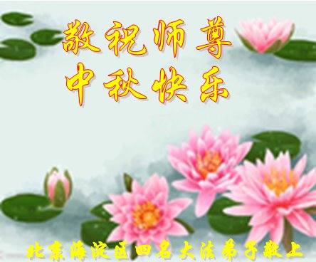 我們是海澱一大法弟子及家人,在此我們恭賀大法師父中秋節快樂!是大法師父救了我們,使我們有了一個完整的家。我們支持大法,支持大法弟子修煉,相信大法。在此再次恭祝大法師父中秋節快樂!