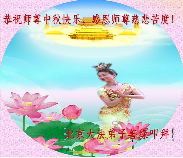 我是豐台一老年大法弟子,在此我恭祝師父中秋節快樂!感謝師尊對我的救度!感謝師父對我這兩次過關承受的很多很多,我無以言表,只是叩謝、叩謝、叩謝師父!我只有精進實修,實修自己。