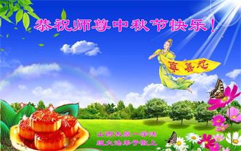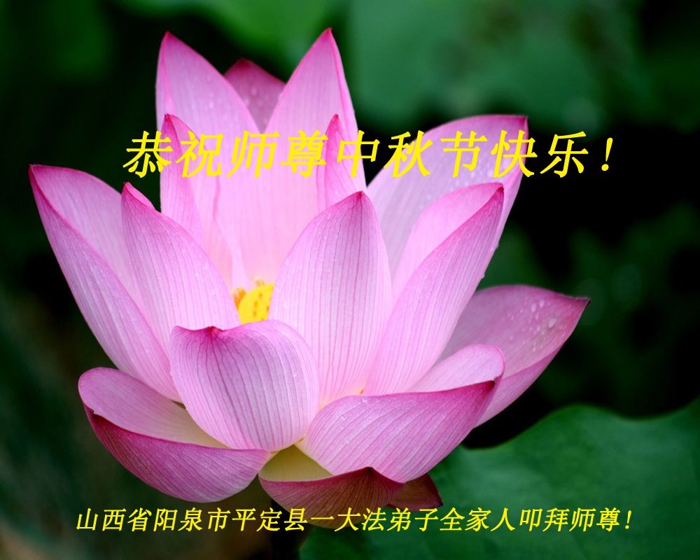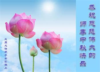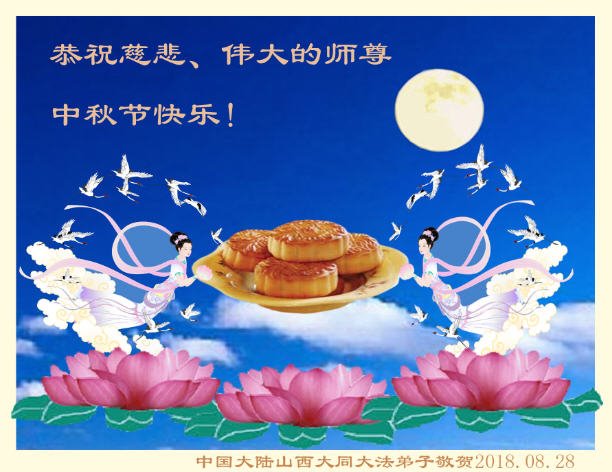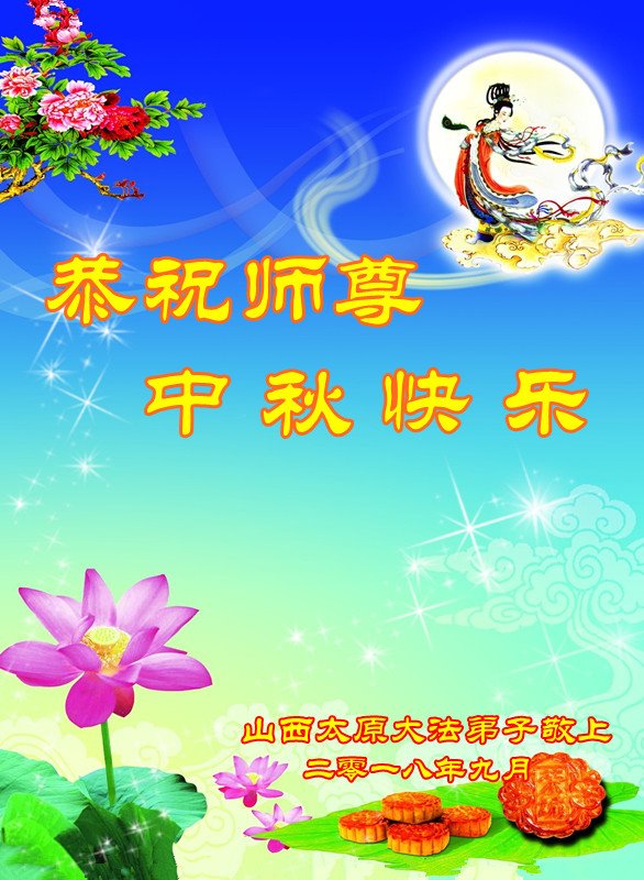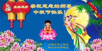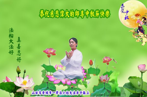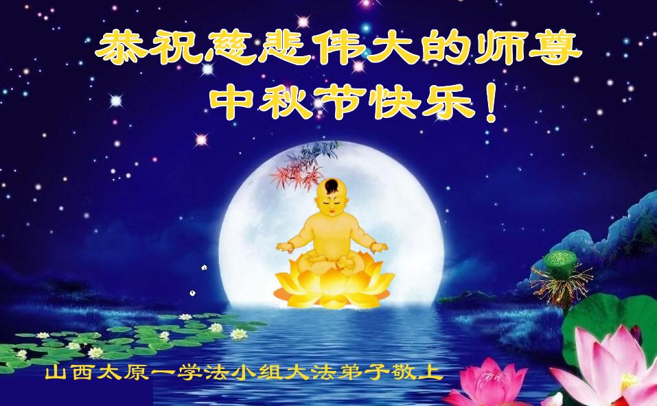 「每逢佳節倍思親」,我們學法小組大法弟子想念您,盼師父早日回國!在正法最後的時刻,我們繼續做好三件事,互相配合努力多救人,不辜負師尊的慈悲救度。恭祝師尊中秋節快樂!晉城市一學法小組大法弟子叩拜!
