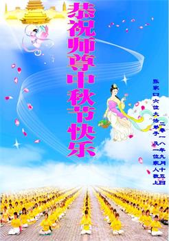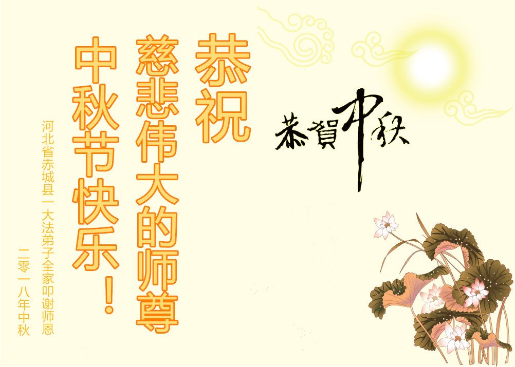 我們一家三口恭祝慈悲偉大的師尊中秋節快樂!修煉大法二十一年,師尊慈悲的呵護、一次次點化……我們一家沐浴在佛光中,幸福無比!千言萬語無法表達我們一家對師尊的感恩。唯有做好三件事兌現誓約,精進實修,惟願師尊笑!弟子跪拜師尊!