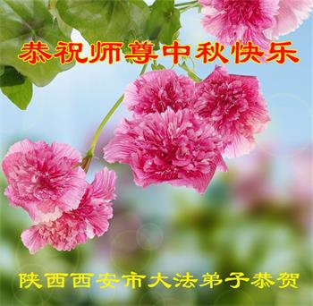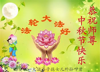 陝西省西安北郊一大法弟子及全家敬祝慈悲偉大的師尊中秋快樂!