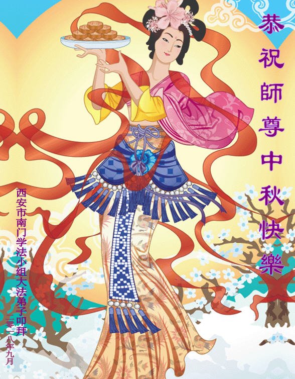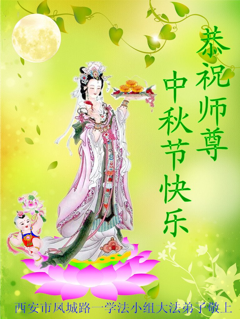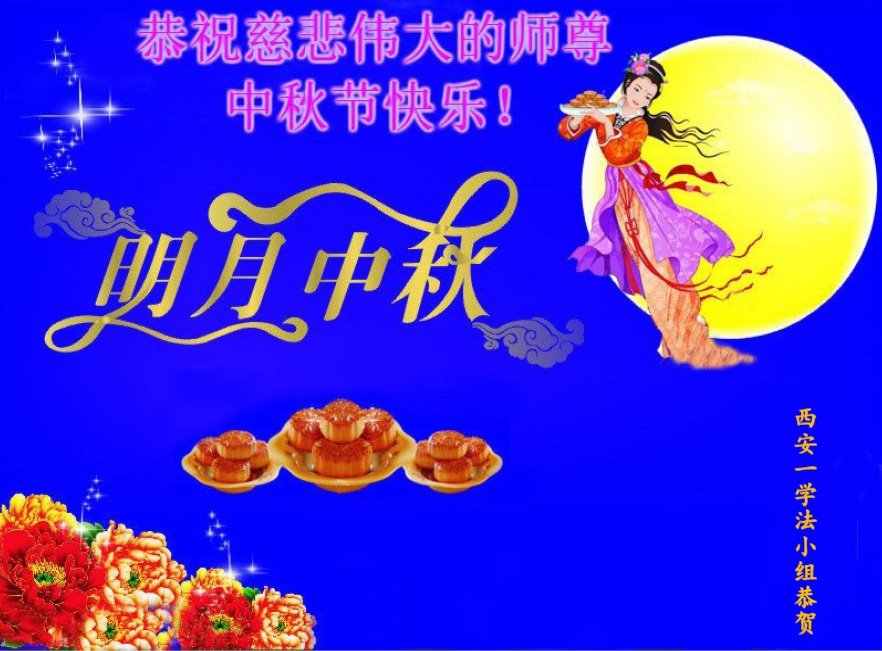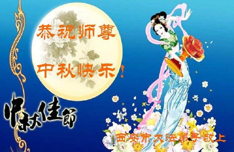 陝西西安市大法弟子恭祝慈悲偉大的師尊中秋節快樂!